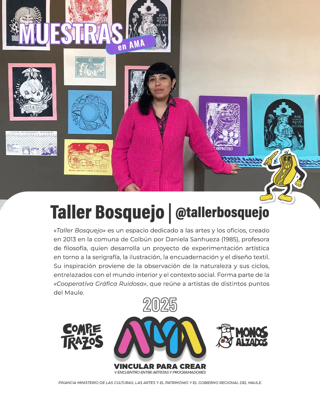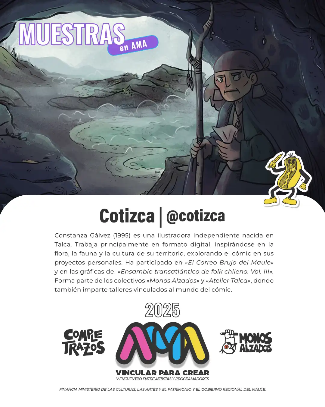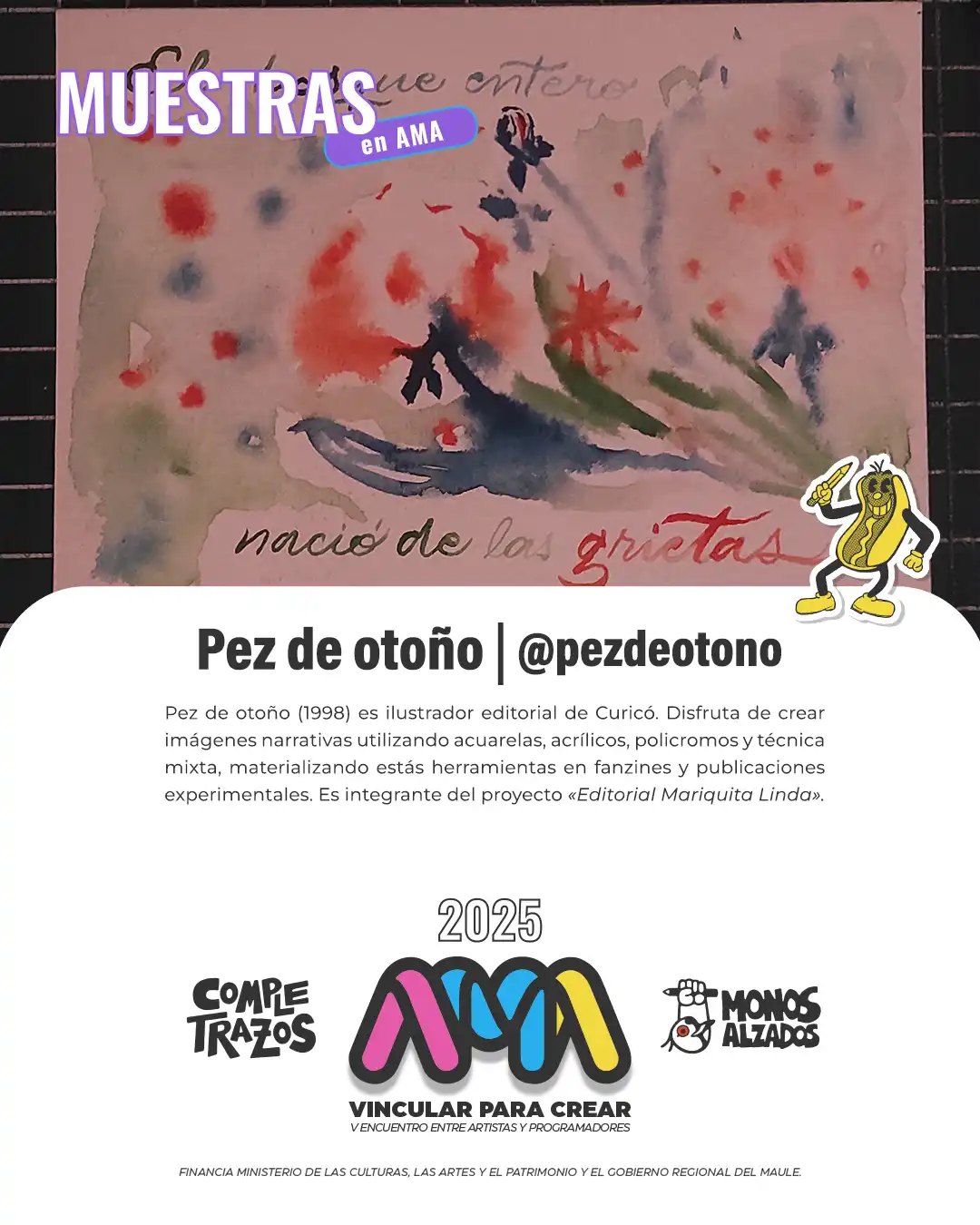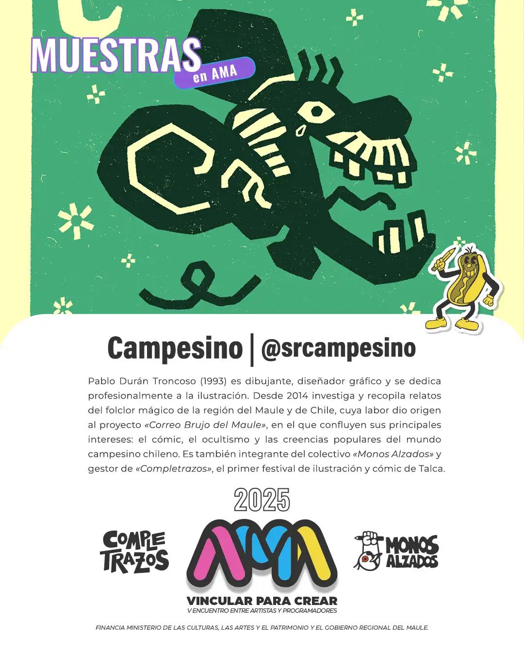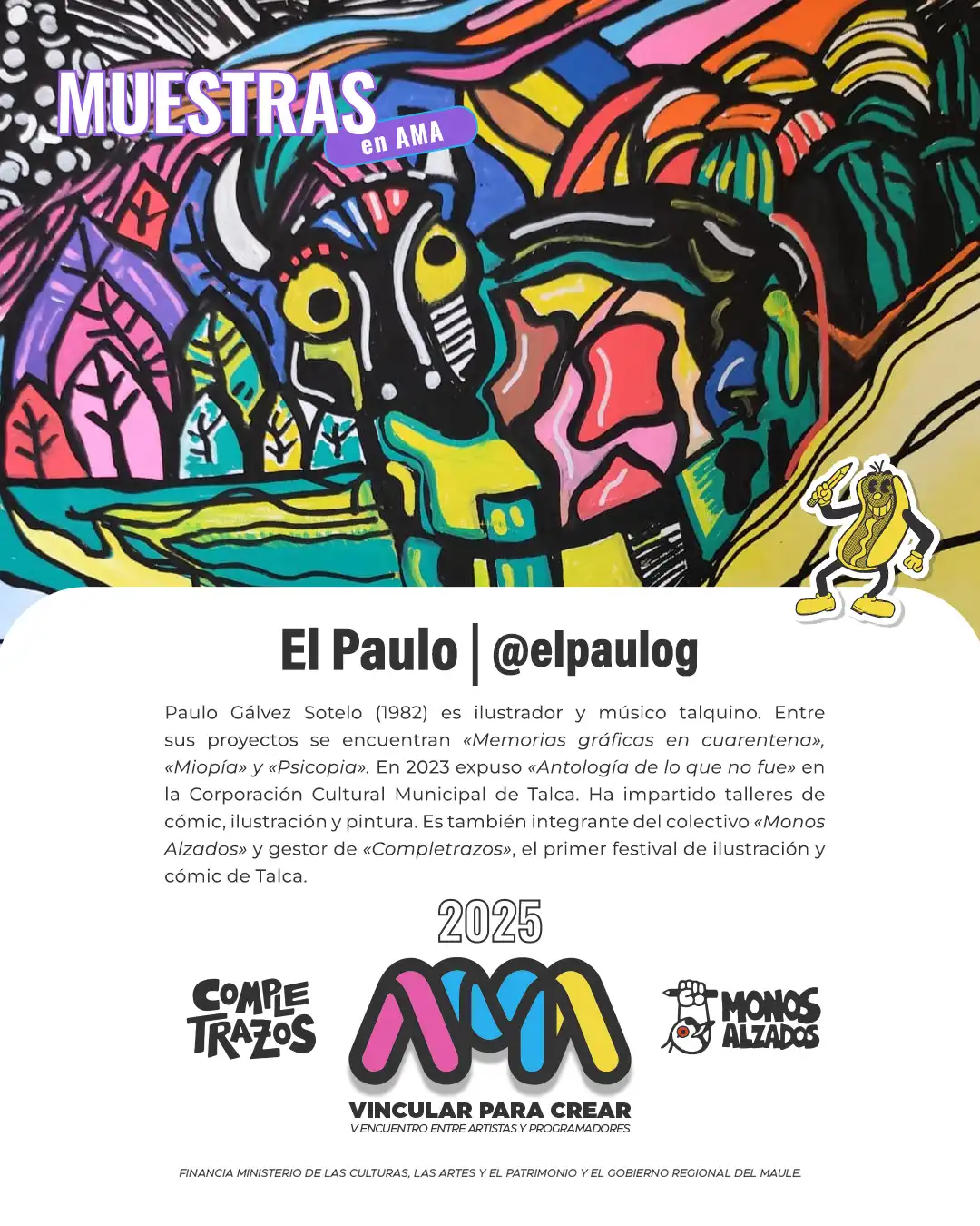 Completrazos es un festival gratuito de ilustración, cómic y artes gráficas, organizado de manera independiente por el colectivo Monos Alzados y su principal objetivo es promover, difundir y contribuir a profesionalizar el trabajo de ilustradores, historietistas y artistas maulinos. En este AMA presentan una muestra de su trabajo en la galería del TRM.